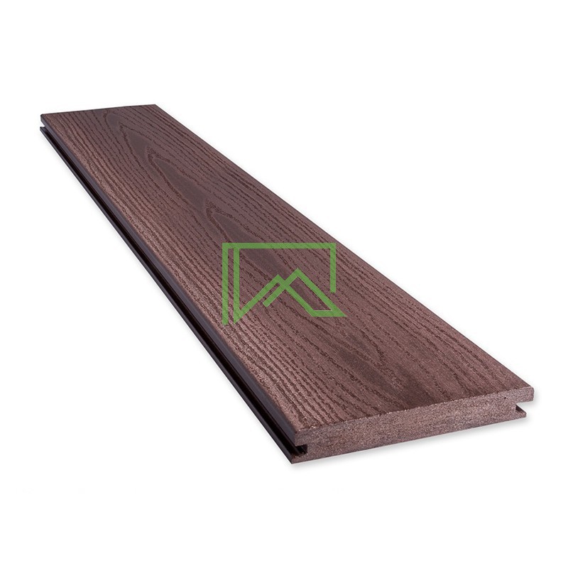 Террасная доска PERWOOD REAL MASSIVE с полным профилем с текстурой дерева и шлифованной (брашованою) поверхностью от чешского производителя изготовлена из высококачественного материала ДПК (50% древесины твердых пород и 50% первичного ПВХ) с высокой прочностью и длительным сроком службы. Стандартная длина доски составляет 4000 мм, однако она также может поставляться с индивидуальной длиной без доплаты.
